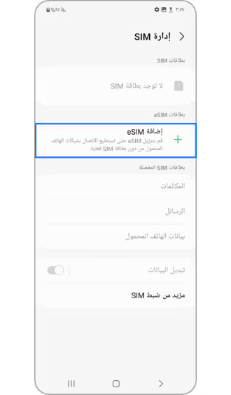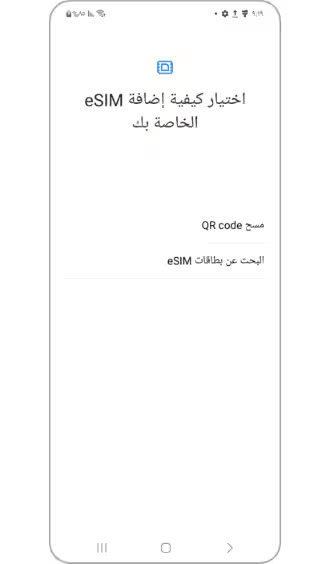 إذا كنت تمتلك رمز الاستجابة السريعة (QR code) الذي يقدمه مزوّد الخدمة الخاص بك، قم بفتح تطبيق الضبط، اضغط على الاتصالات > إدارة SIM > إضافة eSIM > مسح QR code الاستجابة السريعة للمشغل، ثم قم بمسح رمز الاستجابة السريعة.