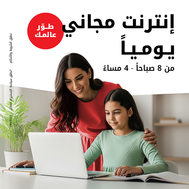 في الأوقات الصعبة، التواصل يصبح شيئاً أساسياً لا غنى عنه. مع خدمة الإنترنت المجاني من 8 صباحاً لغاية 4 مساءً، أنجز أعمالك من البيت وتابع دراستك أونلاين بكل سهولة وبدون انقطاع. لأن في الأوقات المهمة، تواصلنا هو الذي يجعل العائلة والتعليم والعمل متواصلين دون انقطاع.