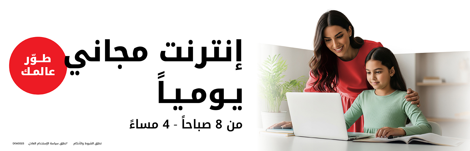 إنترنت مجاني يومياً من الساعة 8:00 صباحاً حتى 4:00 مساءً، مستمر لغاية 18 أبريل 2026.