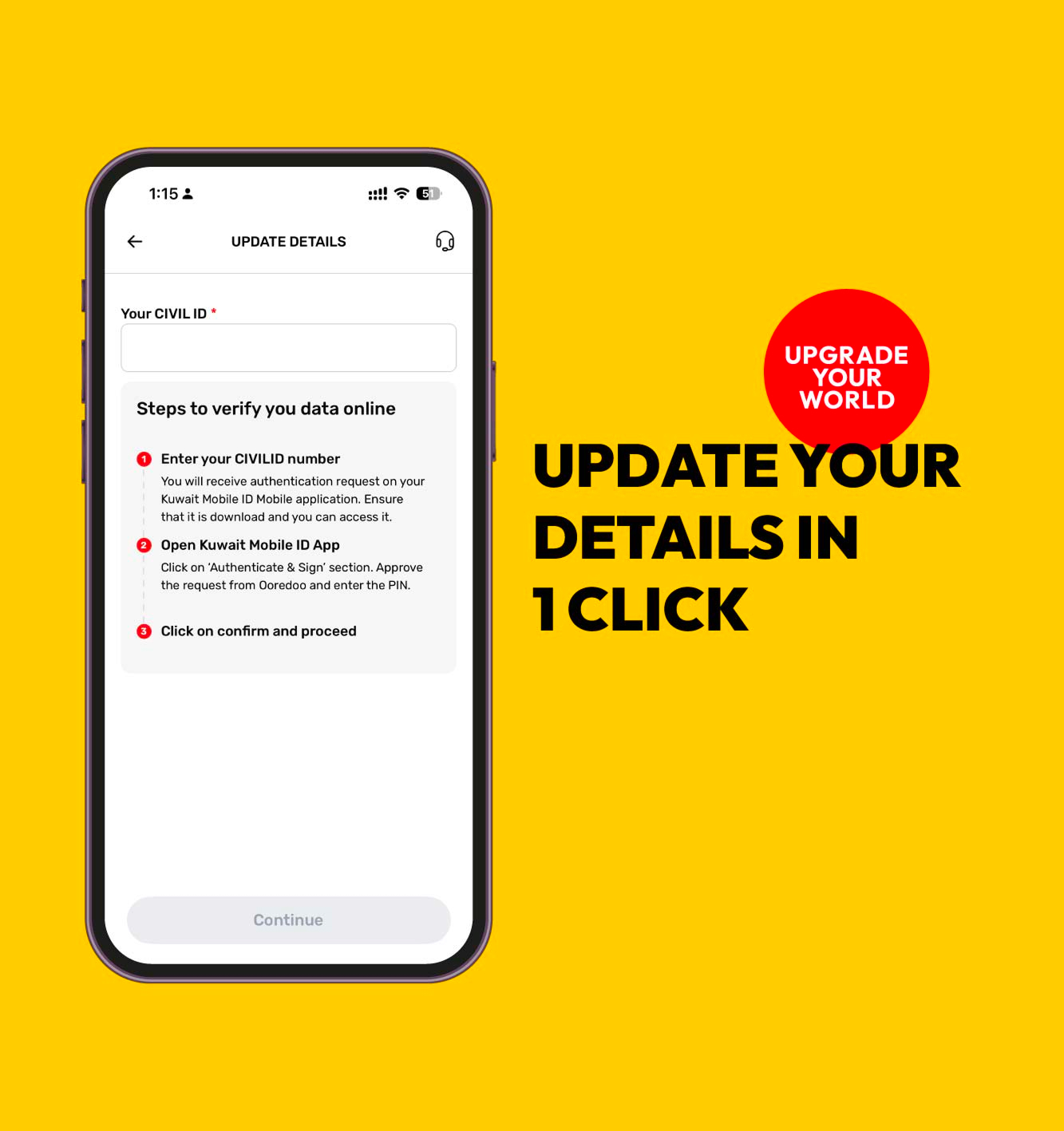 Enter Civil ID number and check Kuwait Mobile ID app for authentication request