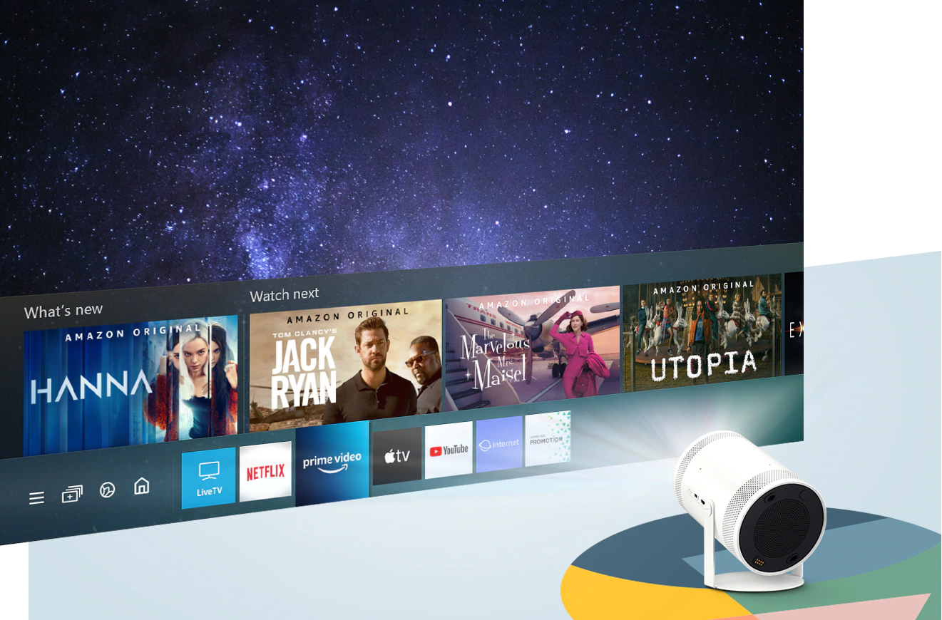 Wherever you go, The Freestyle brings you the same Smart TV experience as a Samsung Smart TV*. The Freestyle will bring all your must-see entertainment and favorite TV apps in one place, at the touch of a button.